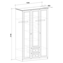 Состоит из: отделения с полками, 2-х отделений со штангой для одежды, 2-х выдвижных ящиков.