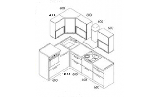 Размер кухни: 1600 х 2400 мм