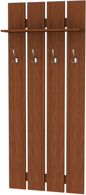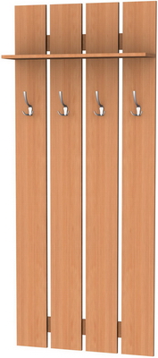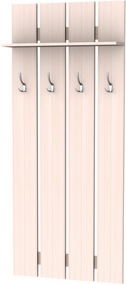 Более того – эта модель вешалки замечательно сочетается практически со всеми возможными вариантами мебельных комплектов, которые приобретаются для прихожих, ведь она может изготавливаться по Вашему желанию в одной из представленных вариаций расцветок. Пять замечательных цветов покрытий, имитирующих ценные породы древесины, украсят даже самую скромную прихожую. Это ясень, венге, дуб (в двух оттенках) и ольха. Незачем загромождать пространство шкафами, когда есть такая замечательная, стильная модель, которая выглядит солидно и дорого. Ее нет необходимости прятать, наоборот – она способна внести изюминку в интерьер. Хорошая фурнитура замечательно дополняет вешалку, сверху предусмотрена полочка для головных уборов.