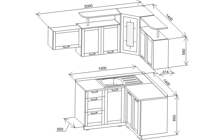 В стоимость кухонного гарнитура "Дельта" входит: каркас+фасад, столешница (пластик "ракушка", "колорадо"), пристеночный профиль.