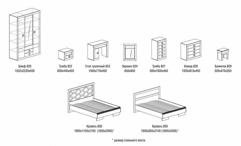 Все модули спальни Флора могут продаваться по отдельности!