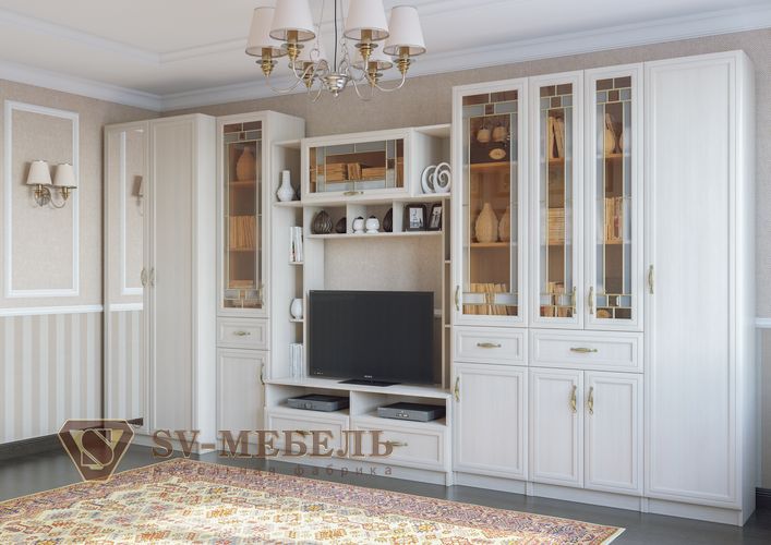 Вега - модульная гостиная в классическом стиле. Стильная, современная, функциональная! Каждый покупатель может подобрать для себя любое количество модулей - пеналы, шкафы, место под ТВ, тумбы, комоды. Её уникальность заключается в том, что модульная серия Вега - это серия, включающая в себя гостиную,  спальню, прихожую и даже детскую. Модули всей системы прекрасно дополняют друг друга! Вега - вариант именно для Вас!