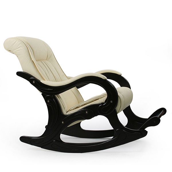 Боковины и подлокотники классического дизайна изготовлены из дерева. Кресло-качалка имеет удобную подножку. Особый комфорт создают эргономичная форма сиденья и спинки.