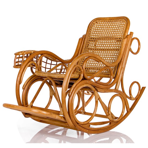 Для удобства предусмотрена выдвигающаяся подножка, подстаканник и держатель для газет. Цвет изделия вы выбираете сами, можно также дополнительно дооснастить кресло-качалку мягкими подушками для большего комфорта.
