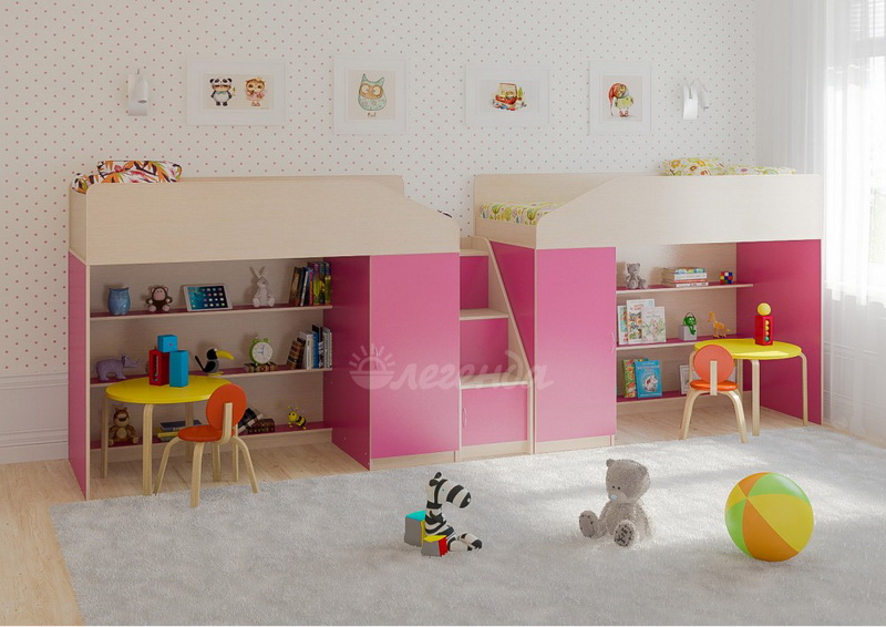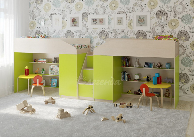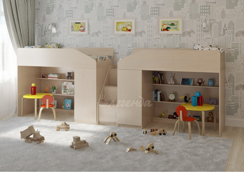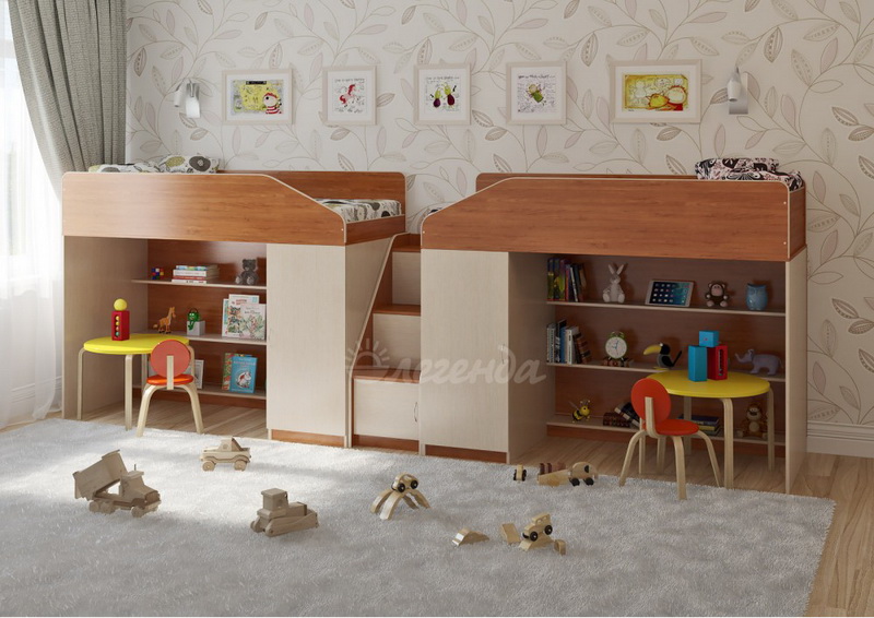 Две уютных кровати Легенда 11 с большим спальным местом размером 1800х800. Под спальными местами располагаются игровые зоны – свой уголок,словно домик для каждого ребенка.
