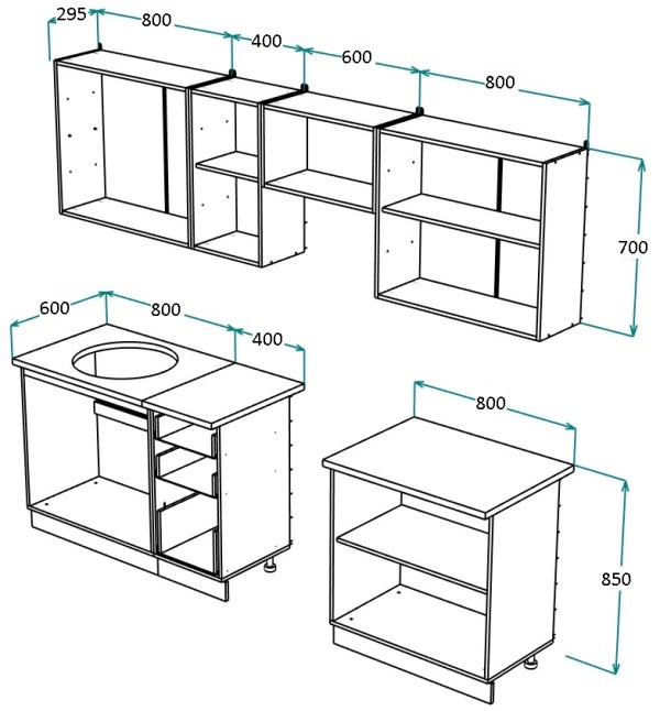 Есть все необходимые отверстия под петли, ручки. Фурнитура входит в комплект (ручки, ножки, петли, элементы крепления.