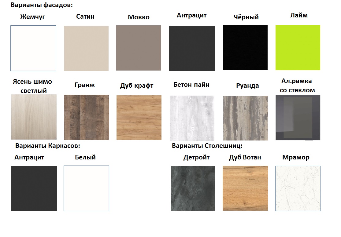 Срок изготовления кухни 7 рабочих дней. Кухню можно менять по комплектации, дополнять, удалять модули, менять цвет фасадов, корпуса и столешницы.