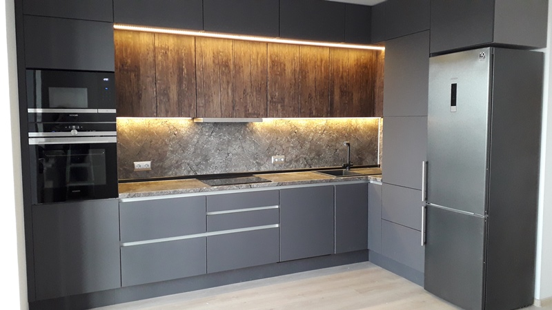 Фасады МДФ с пленкой графит, старое дерево.