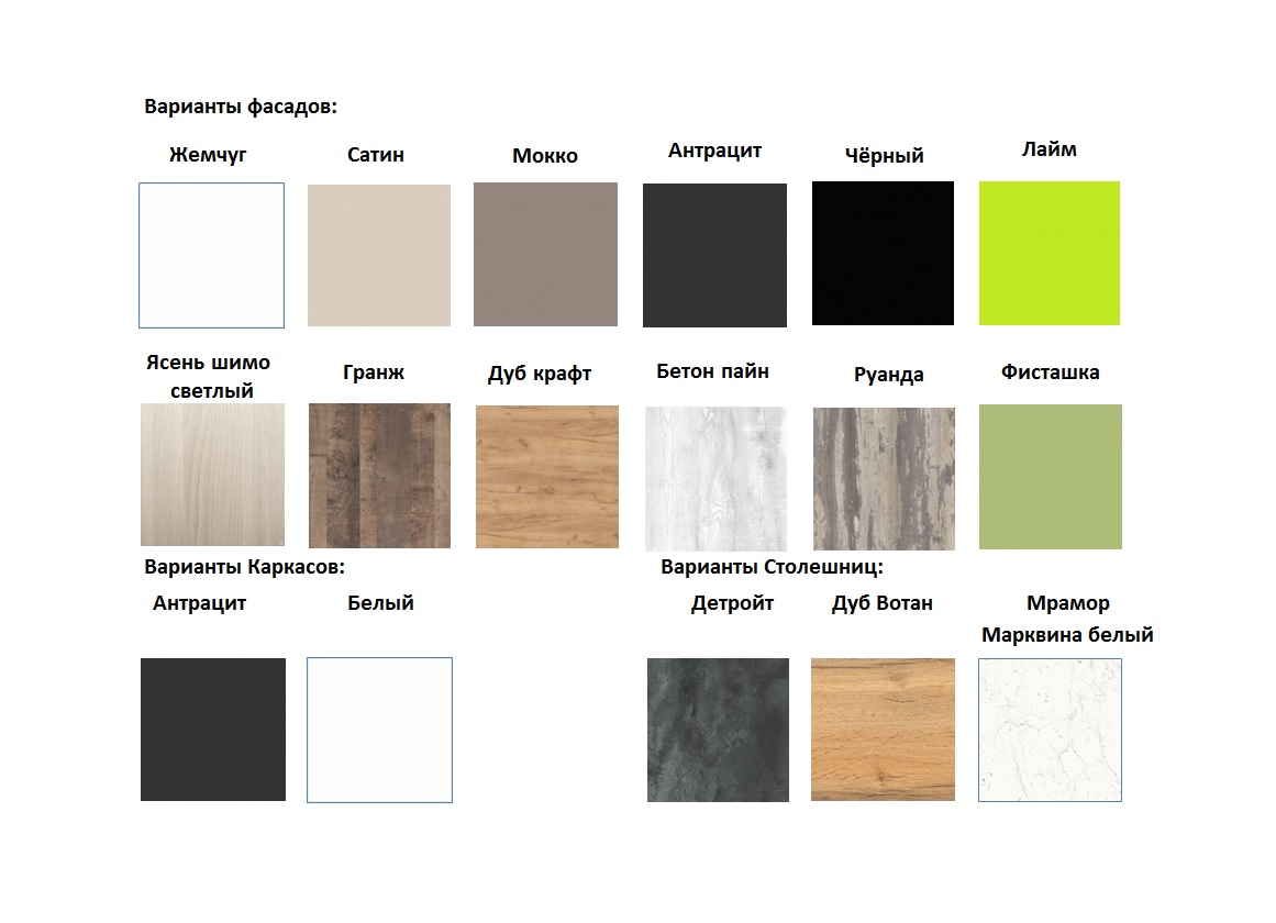 Срок изготовления кухни 7 рабочих дней. Кухню можно менять по комплектации, дополнять, удалять модули, менять цвет фасадов, корпуса и столешницы.