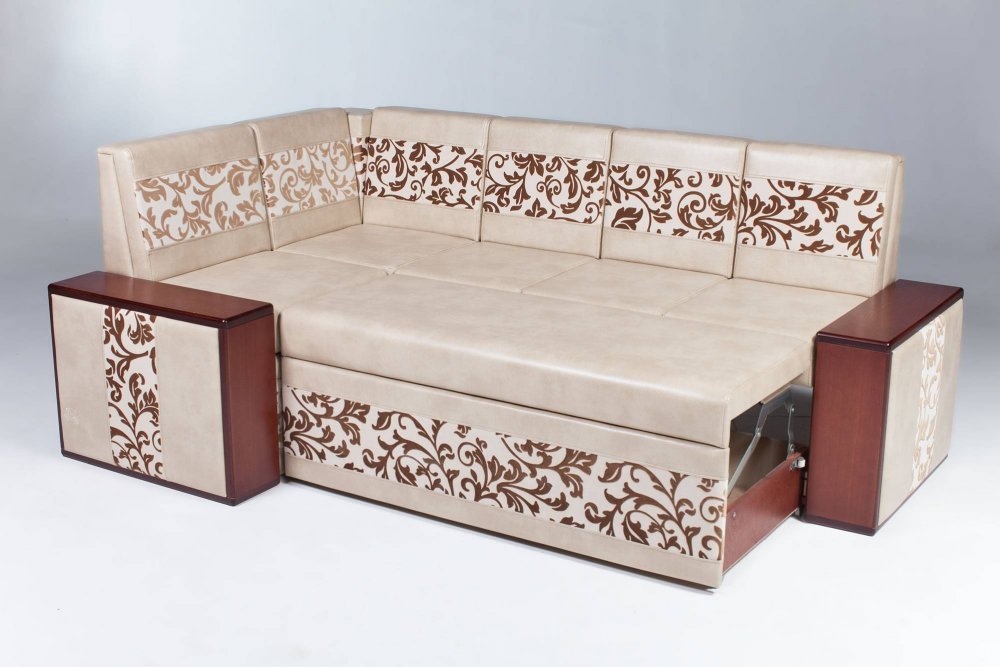 - Модель без спального места, с выкатным ящиком. Вместо трансформирующейся в спальное место секции может быть установлен выкатной ящик.