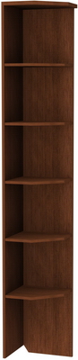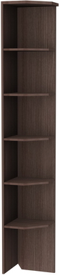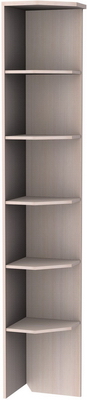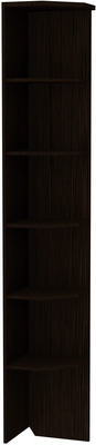 Этот практичный угловой стеллаж станет незаменимым предметом мебели, как в доме, так и в офисе. Он оборудован пятью полками, выполненными в форме многоугольника. На такую полку можно поставить не только книги и сувениры, но и папки с бумагами, разложить здесь рекламную продукцию. Все полки находятся на равном расстоянии друг от друга, они закреплены надежно и прочно, как и другие элементы стеллажа.