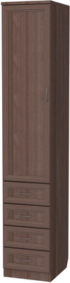 Компактный, узкий шкаф, в ящики и на полки которого можно разместить вещи, аксессуары, необходимые мелочи. Такой шкаф занимает минимум места, но при этом обладает функциональностью и строгой красотой.