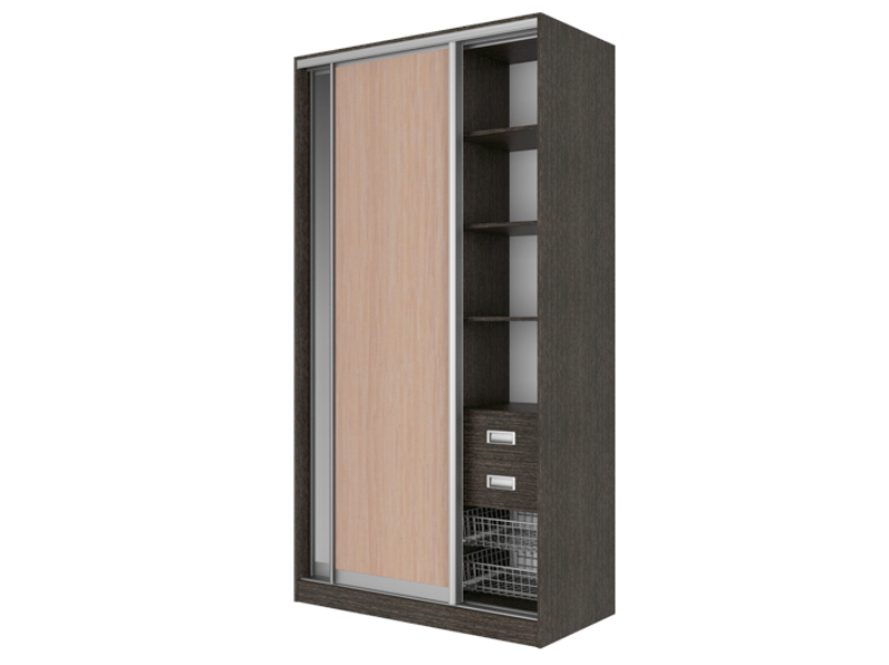 Алюминиевая система направляющих, кромка АБС на наружных частях шкафа, идеально сконструированные пропорции шкафа.