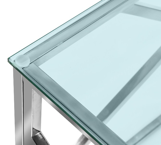 Журнальный столик  АРТ ДЕКО, прозрачное стекло, сталь серебро.